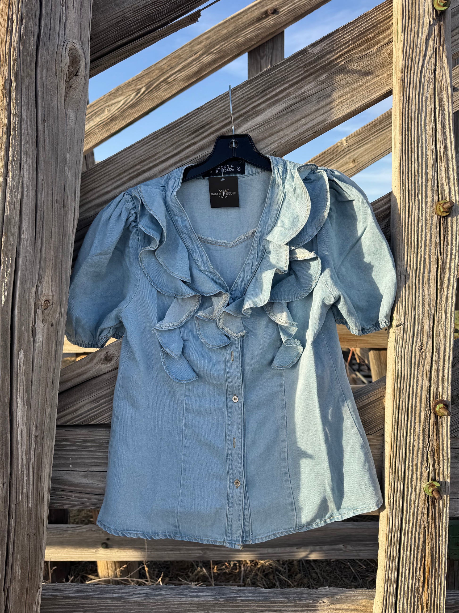Chambray Ruffle Blouse